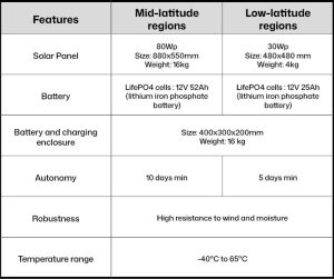 Le kit offre jusqu’à 10 jours d’autonomie, assurant 100% de disponibilité du service, 24h/24 et 365 jours par an. Cela garantit une connectivité LoRaWAN ininterrompue sur les sites hors‑réseau, quelle que soit la météo ou les variations d’alimentation.